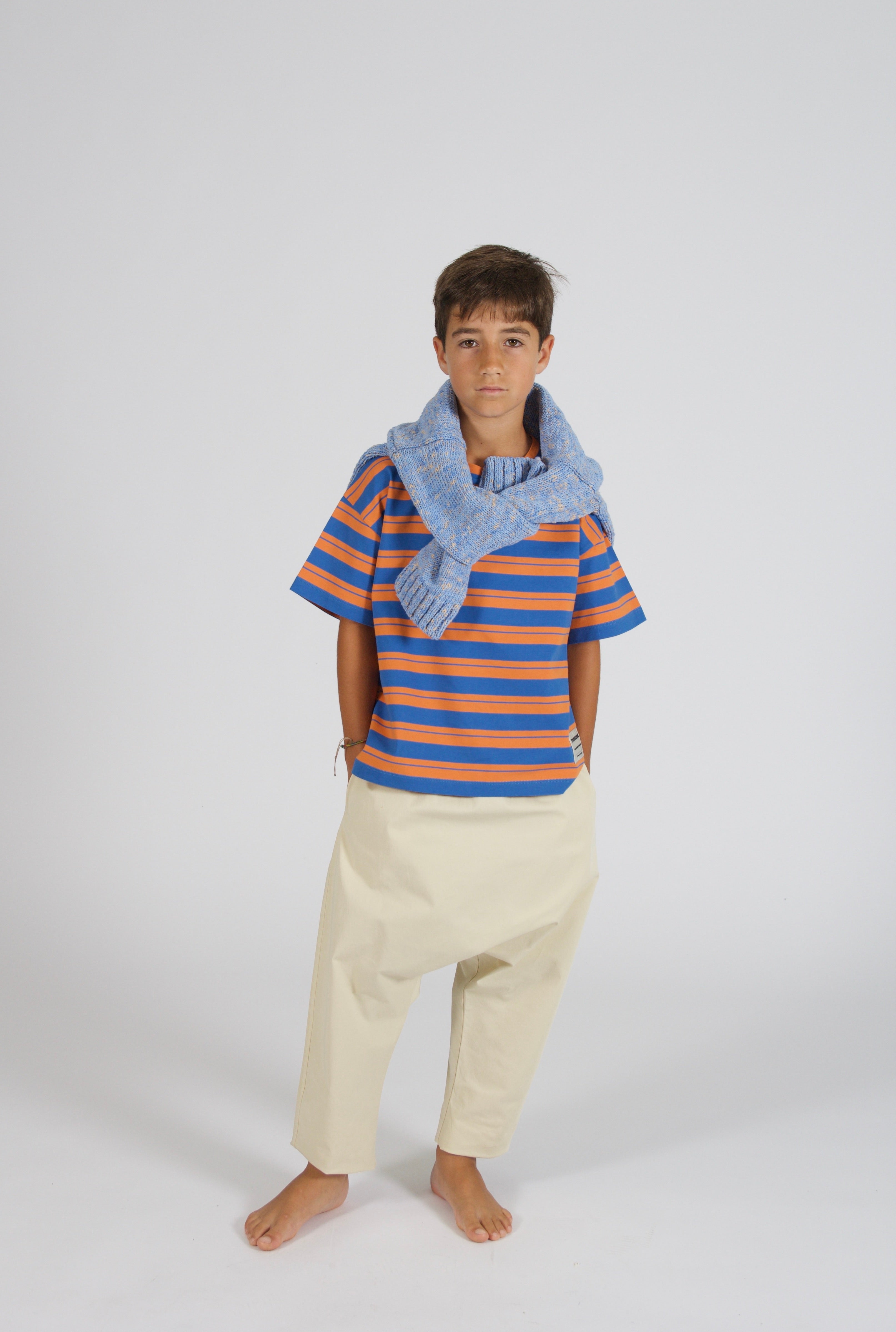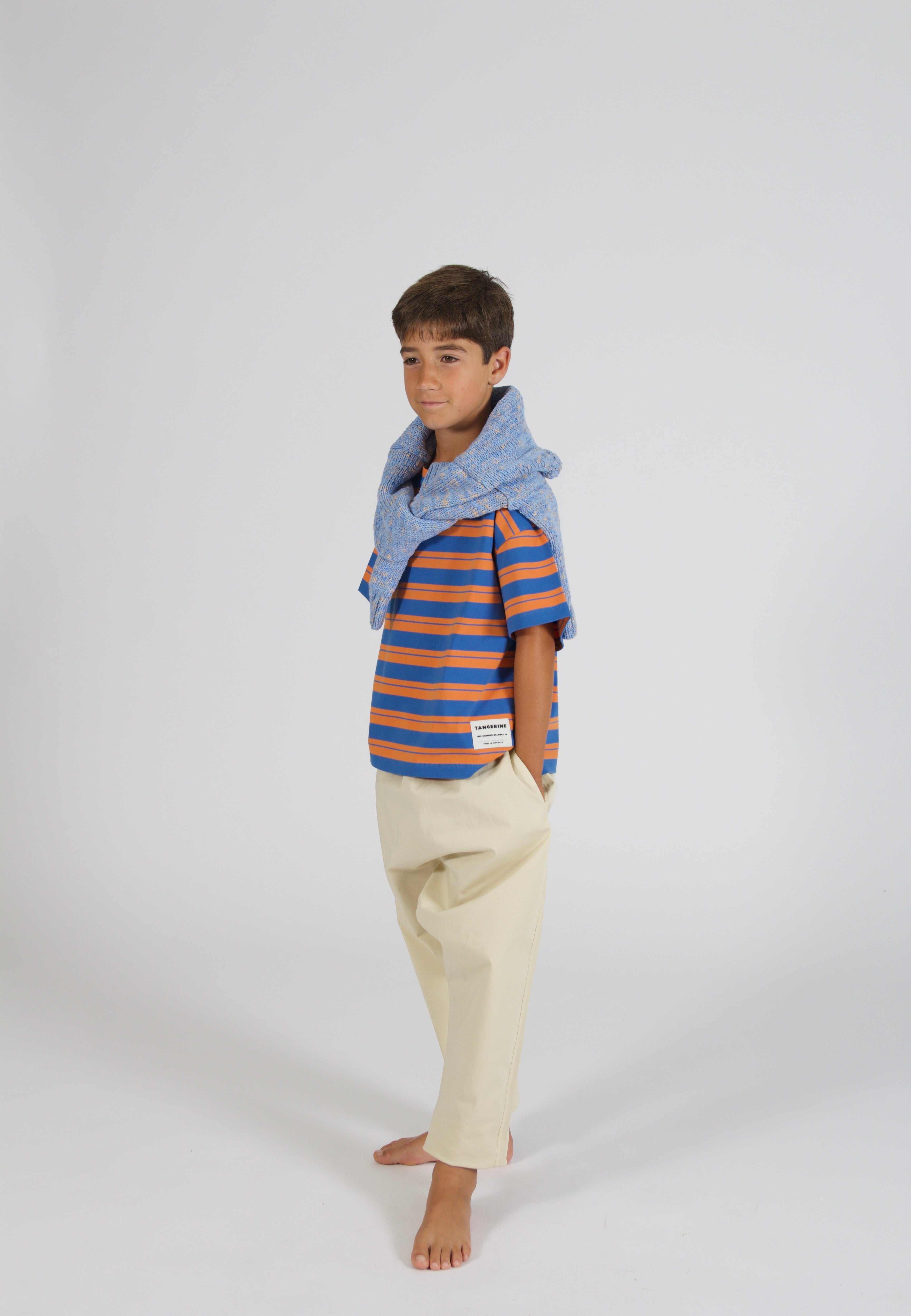 2025春夏系列 - 藍橘條紋短袖T恤(2Y-8Y/女性:S及M)